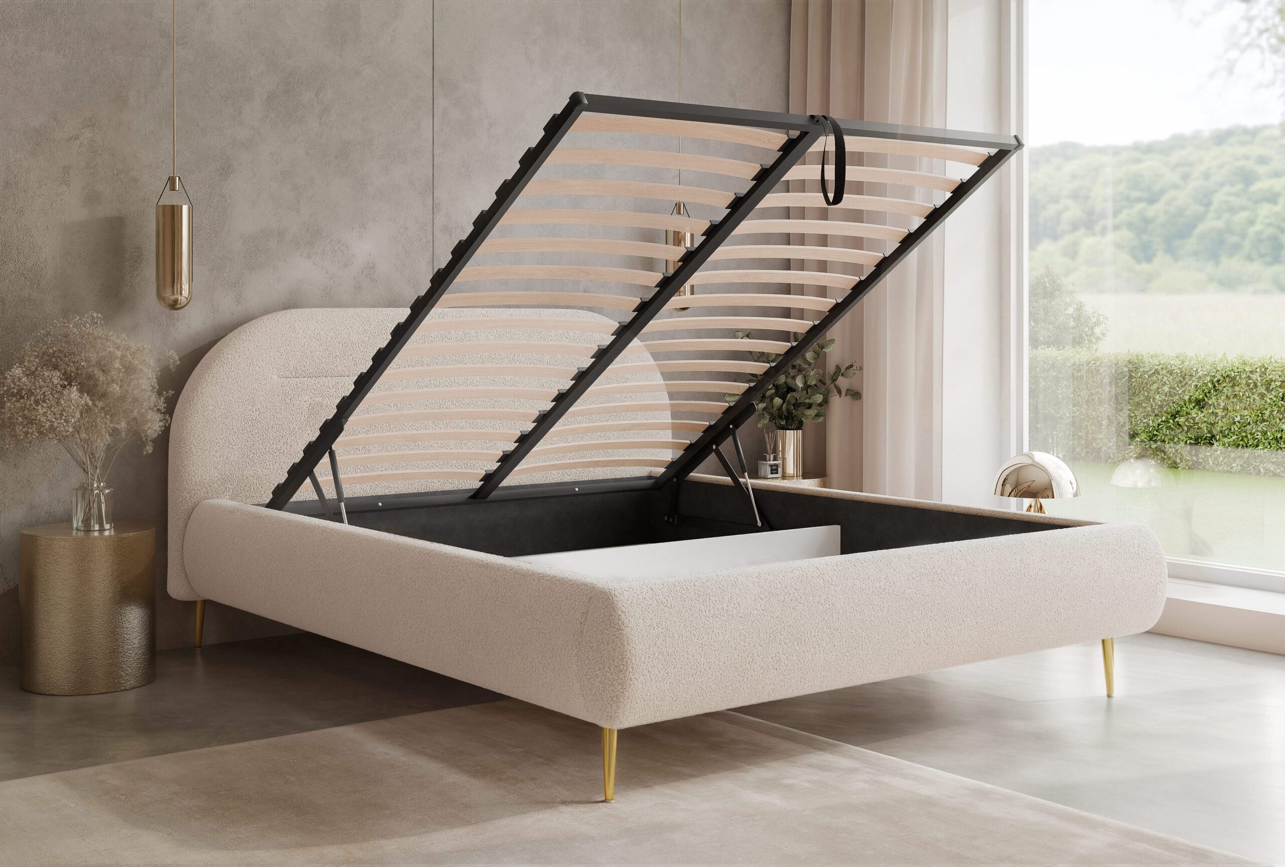 „Avalon“ su kojelėmis – tai lova, sukurta moderniam, ramiam interjerui. Minkštas, aptakus galvūgalis ir tvirta forma sukuria darnią visumą, kuri puikiai atrodo tiek didesniuose, tiek jaukiuose miegamuosiuose. Šis modelis derina estetiką su funkcionalumu – be nereikalingų detalių.