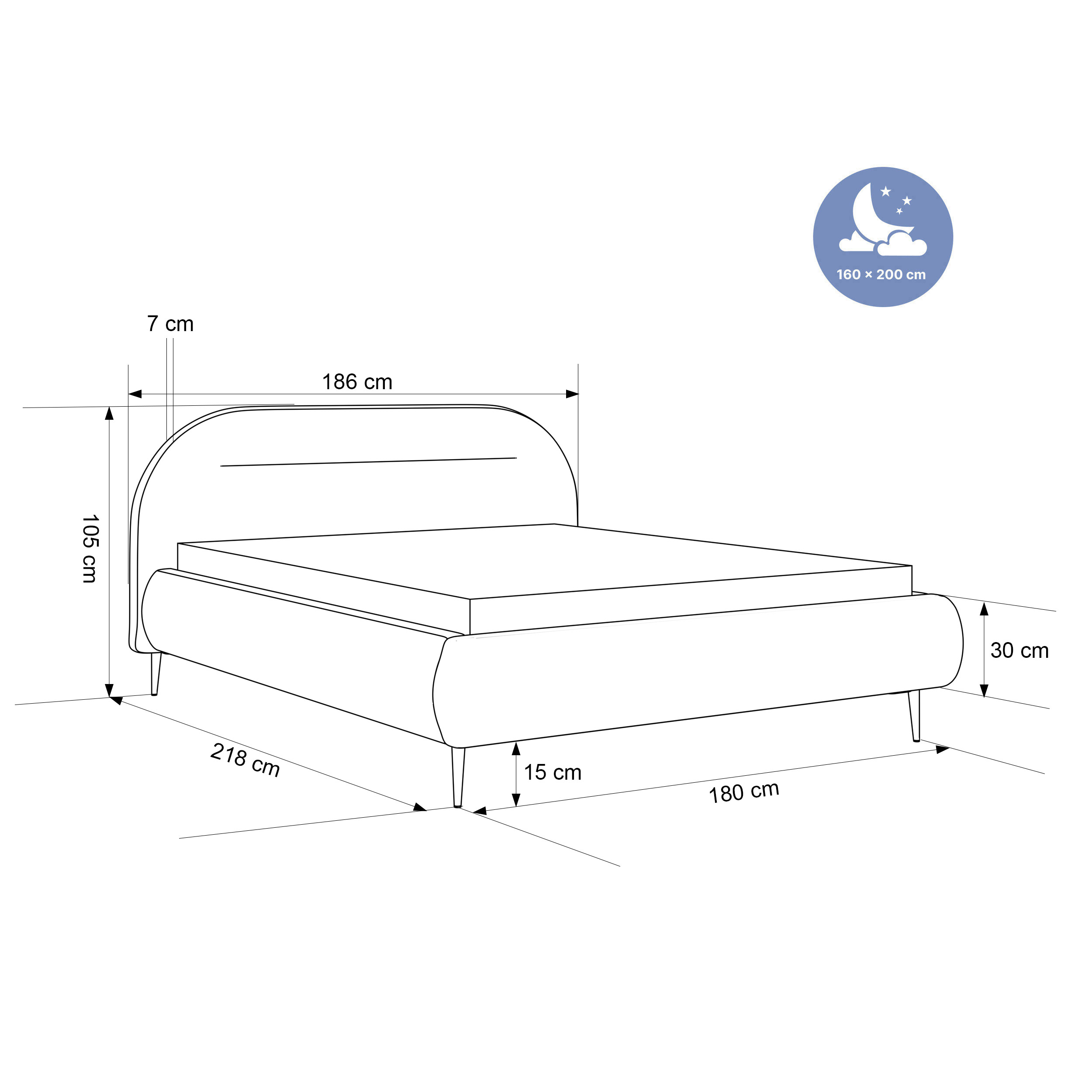 • Lovos šonų aukštis: 45 cm